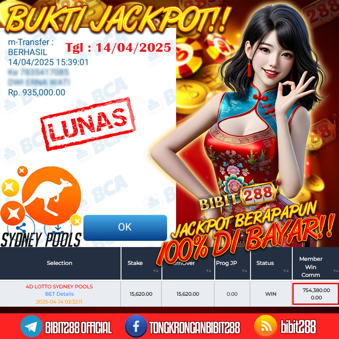 🔥 BIBIT288 – Tempatnya Cuan Kilat, Bayarannya 100% Aman & Ngebut 🔥 💰Member Setia BIBIT288 Bikin Heboh Lagi! 💰Baru aja terjadi kejadian spektakuler di game TOGEL 4D LOTTO SYDNEY POOLS – ID : c****t modal Deposit Rp. 30.000 berhasil cairkan Withdraw Rp. 632,000 ! 🚀💥 Saldo meledak, Cuan mengalir deras tanpa hambatan!! ✨ BIBIT288, Surga Para Pemburu Jackpot!Buat kamu yang masih jadi penonton, saatnya move on! Jangan cuma scroll lihat kemenangan orang lain. Reels udah nunggu diputar sama kamu — sensasi spin yang bikin jantung deg-degan, dan siapa tahu, giliran…