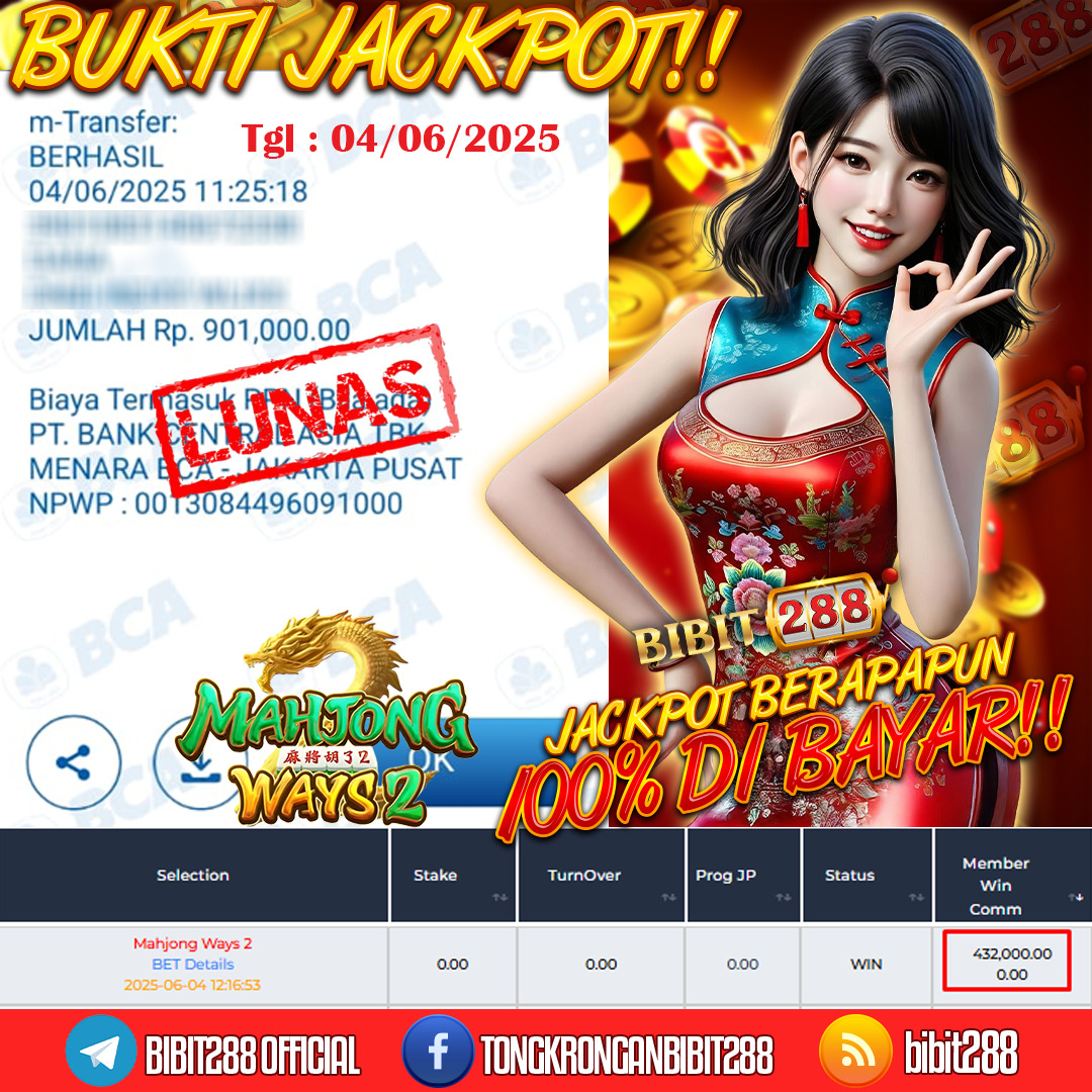 π₯ BIBIT288 – Tempatnya Cuan Kilat, Bayarannya 100% Aman & Ngebut π₯ π° Member Setia BIBIT288 Bikin Heboh Lagi! π°Baru aja terjadi kejadian spektakuler di game slot Mahjong Ways 2 β ID p***93 cuma modal Deposit Rp. 91.000, langsung berhasil cairkan Withdraw Rp. 444.000! ππ₯ Saldo meledak, cuan mengalir deras tanpa hambatan! β¨ BIBIT288, Surga Para Pemburu Jackpot!Buat kamu yang masih jadi penonton, saatnya move on! Jangan cuma scroll lihat kemenangan orang lain. Reels udah nunggu diputar sama kamu β sensasi spin yang bikin jantung deg-degan, dan siapa tahu, giliran…