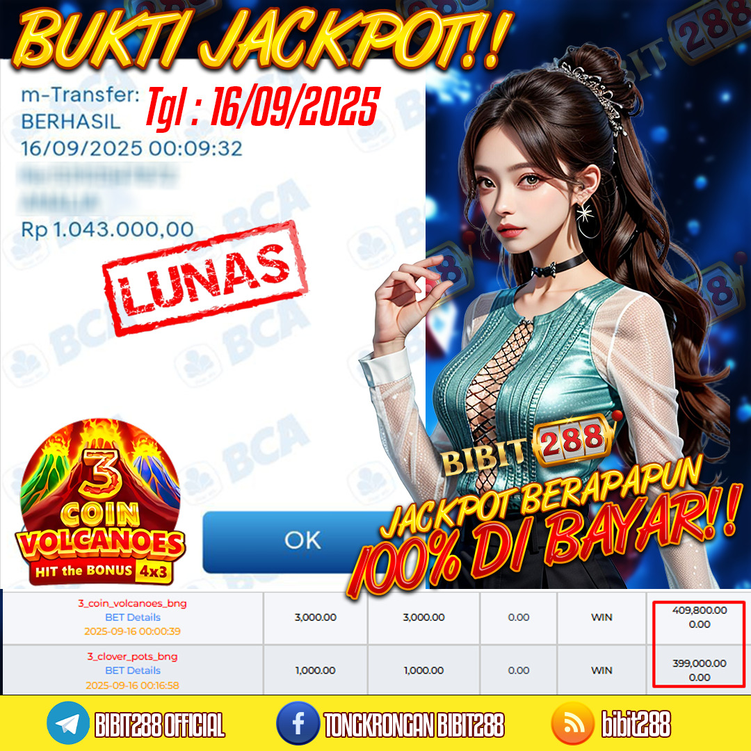 π₯ BIBIT288 – Tempatnya Cuan Kilat, Bayarannya 100% Aman & Ngebut π₯ π° Member Setia BIBIT288 Bikin Heboh Lagi! π°Baru aja terjadi kejadian spektakuler di game slot 3 Coins Volcanoes β ID a*****18 cuma modal Deposit Rp. 300.000, langsung berhasil cairkan Withdraw Rp. 1.043.000! ππ₯ Saldo meledak, cuan mengalir deras tanpa hambatan! β¨ BIBIT288, Surga Para Pemburu Jackpot!Buat kamu yang masih jadi penonton, saatnya move on! Jangan cuma scroll lihat kemenangan orang lain. Reels udah nunggu diputar sama kamu β sensasi spin yang bikin jantung deg-degan, dan siapa tahu, giliran…
