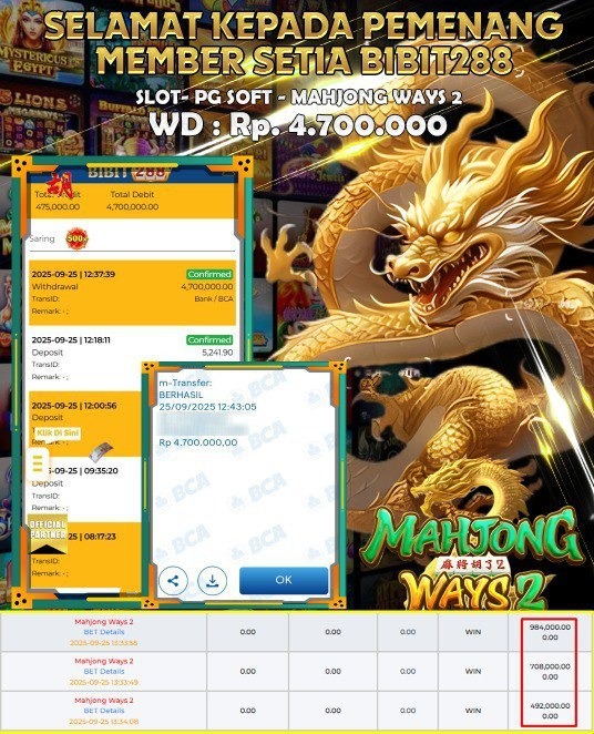 π₯ BIBIT288 – Tempatnya Cuan Kilat, Bayarannya 100% Aman & Ngebut π₯ π° Member Setia BIBIT288 Bikin Heboh Lagi! π°Baru aja terjadi kejadian spektakuler di game slot Mahjong Ways 2 β ID g*****ng cuma modal Deposit Rp. 475.000, langsung berhasil cairkan Withdraw Rp. 4,700.000! ππ₯ Saldo meledak, cuan mengalir deras tanpa hambatan! β¨ BIBIT288, Surga Para Pemburu Jackpot!Buat kamu yang masih jadi penonton, saatnya move on! Jangan cuma scroll lihat kemenangan orang lain. Reels udah nunggu diputar sama kamu β sensasi spin yang bikin jantung deg-degan, dan siapa tahu, giliran…